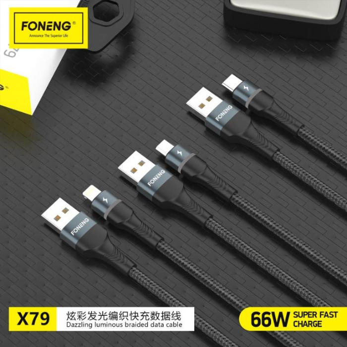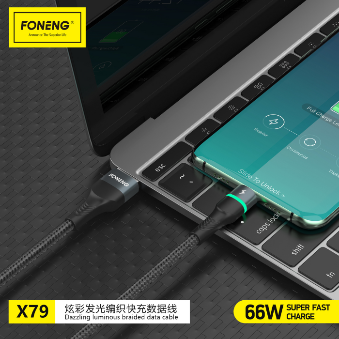 سلك شاحن X79 بطول 1M بأنواع مختلفة (66W 3A) TYPE-C AND IPHONE