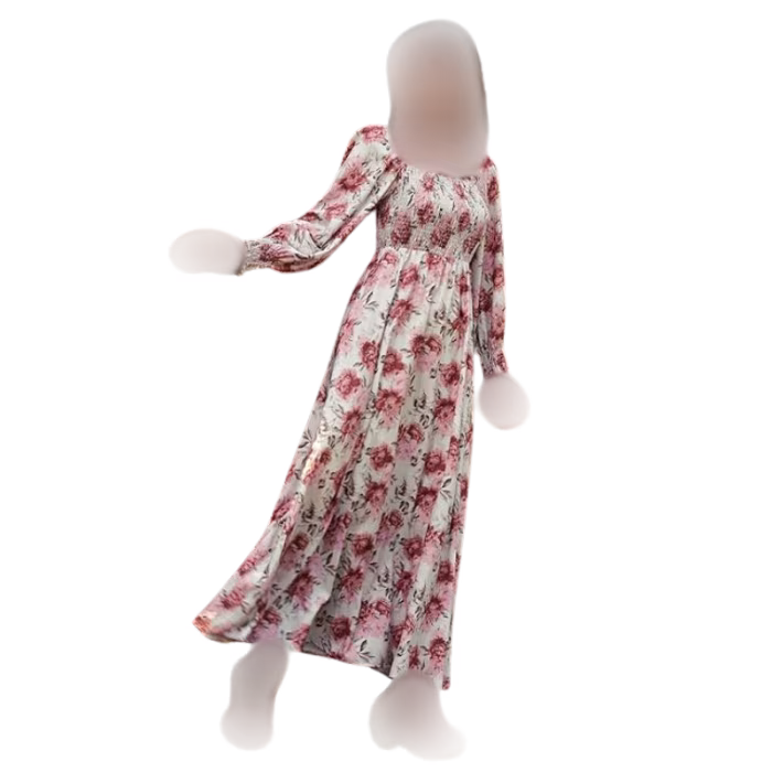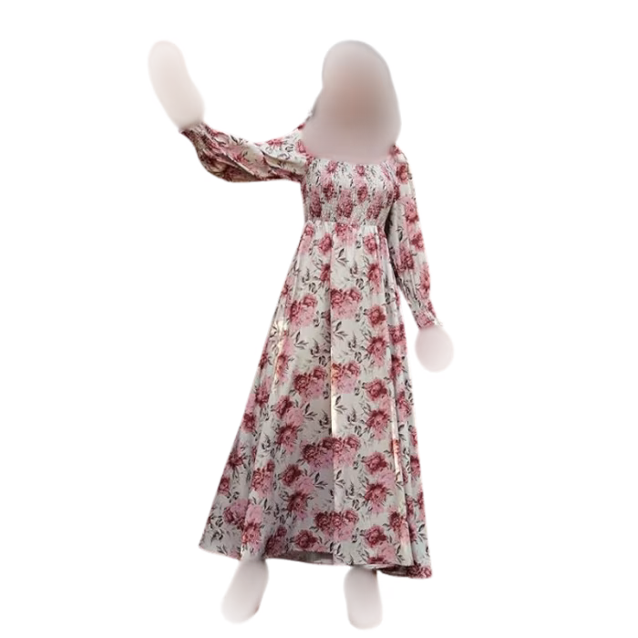 فساتين نسائية برقبة مربعة وطبعة زهور فستان مكشكش للنساء