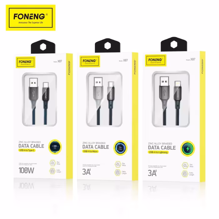 سلك شاحن X87 بطول 1.2M بنوع واحد (TYPE-C 100W/ IPHONE 3A)