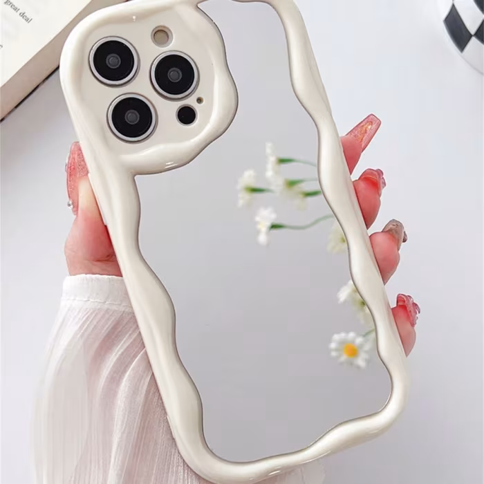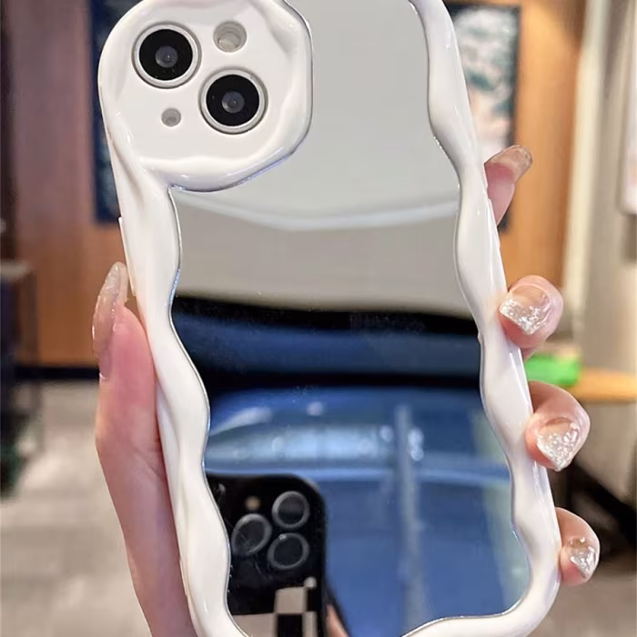 غطاء مرآة غير منتظم السطح متوافق مع آيفون 15 11 14 13 12 برو Xs Max XR X 7 8 6 بلس، غطاء هاتف محمول بحافة موجّهة منحنية