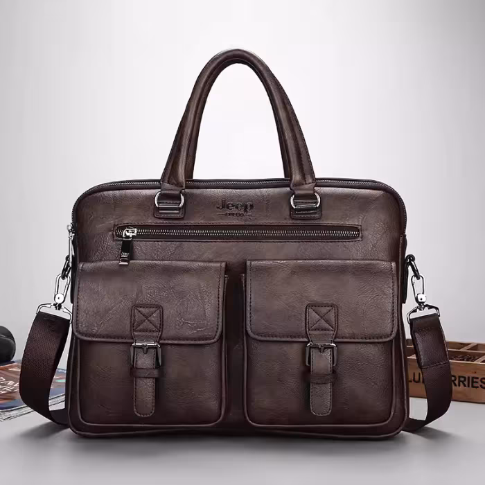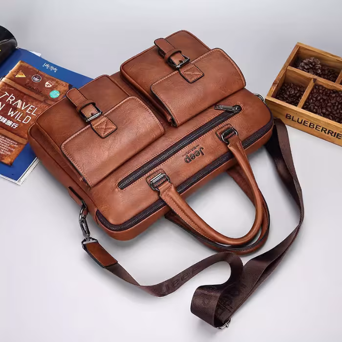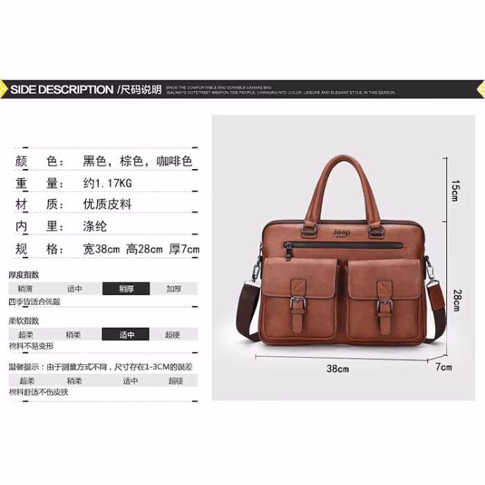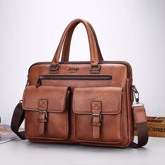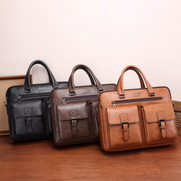 حقيبة يد رجالية نسيج جلد طبيعي متسعة للكمبيوتر وحفظ الاوراق والمنتجات والادوات الشخصية حجم كبير