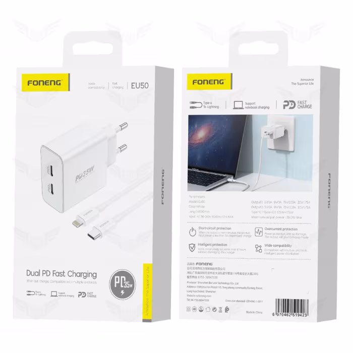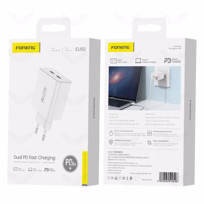 شاحن هاتف بمخرجين مختلفين EU50 USB-C 2-OPU LOISA (PD35W)