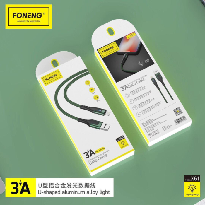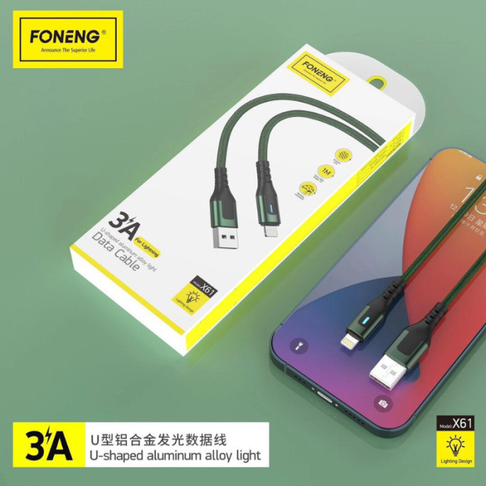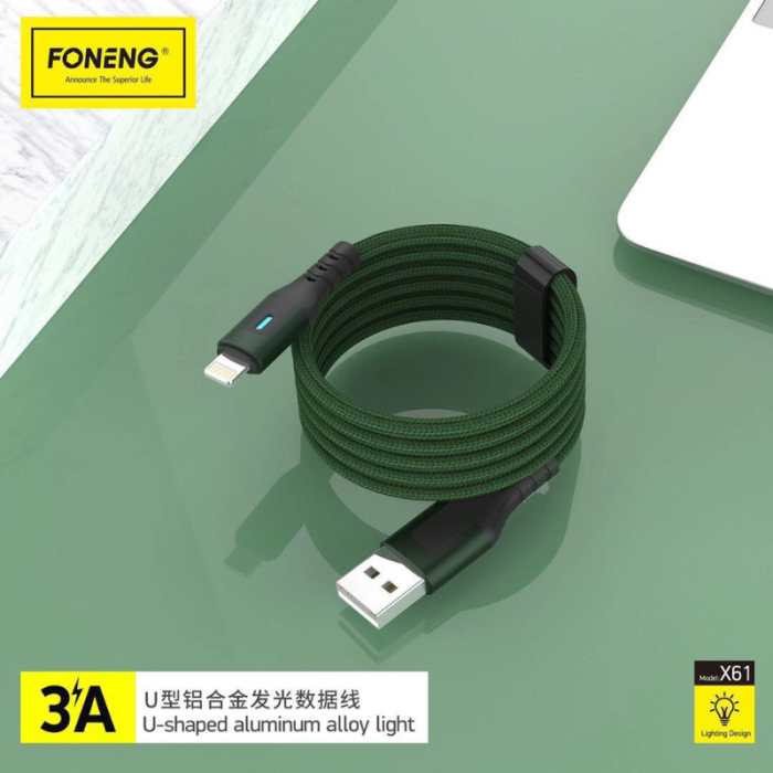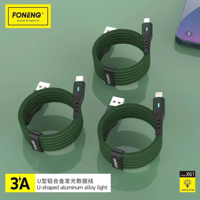 سلك شاحن مضيئ X61 بقوة 3A بتلاث انواع مختلفة (IPHONE/MICRO/TYPE-C)