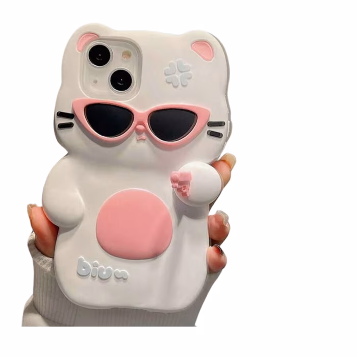 غطاء هاتف قطة بنظارات شمسية كرتونية جميلة، متوافق مع أيفون أبل