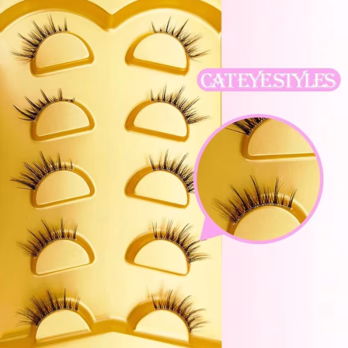 5 أزواج من الرموش الصناعية النصفية ، رموش قطعة واحدة ، الطول 5-10 ملم ، D Curl