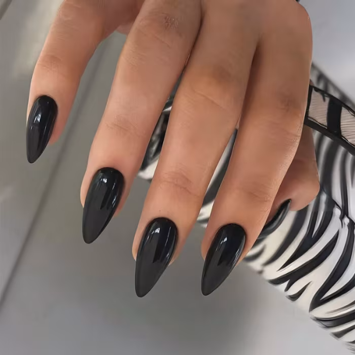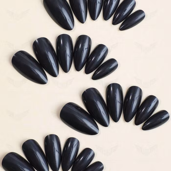 الأظافر الصناعية السوداء متوسطة الحجم من نوع المانيكان، أظافر أكريليك صلبة من نوع ستيليتو
