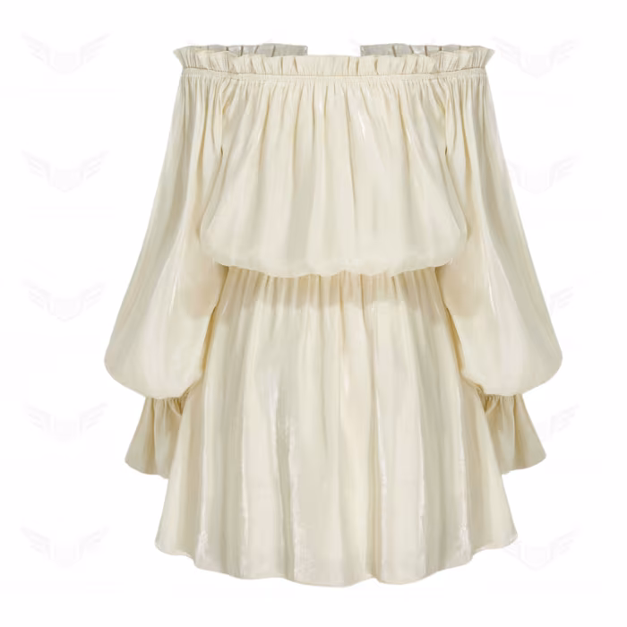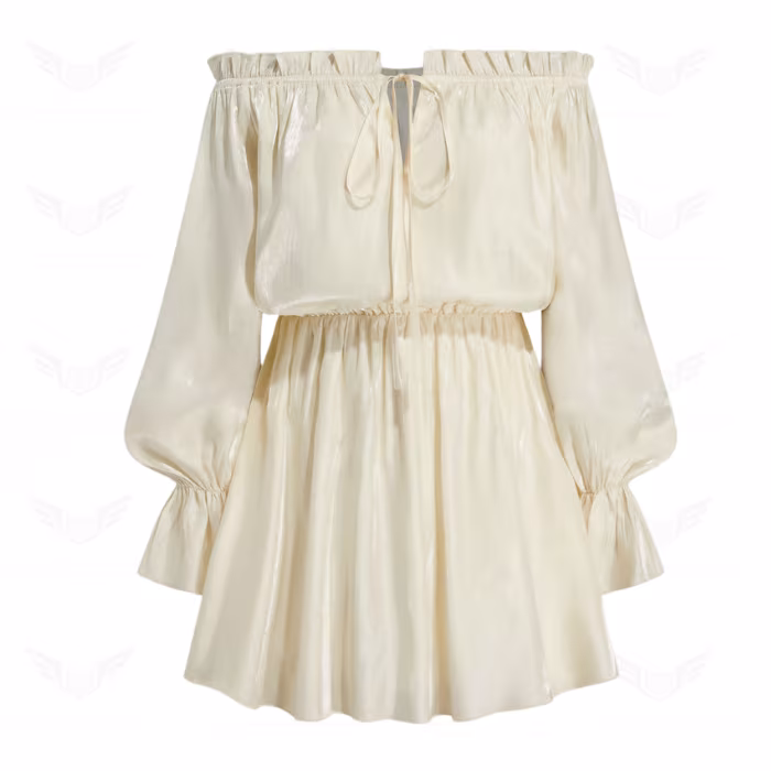 فستان قصير منسوج مكشوف الكتفين معقود بحاشية مكشكشة