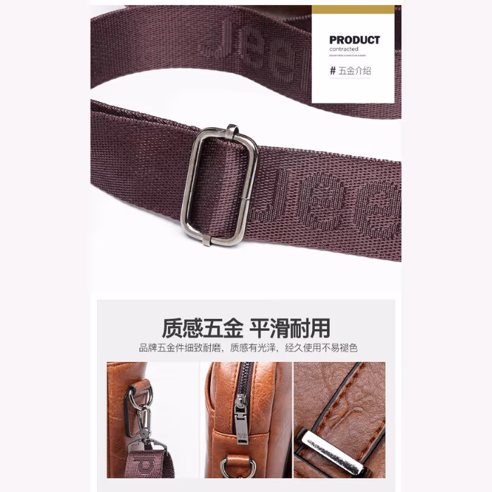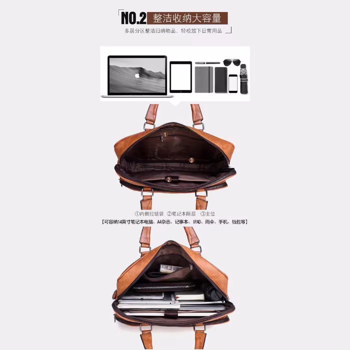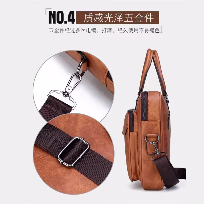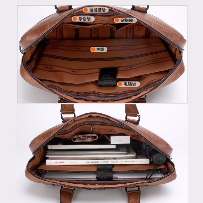 حقيبة يد رجالية نسيج جلد طبيعي متسعة للكمبيوتر وحفظ الاوراق والمنتجات والادوات الشخصية حجم كبير بجيب وسطي