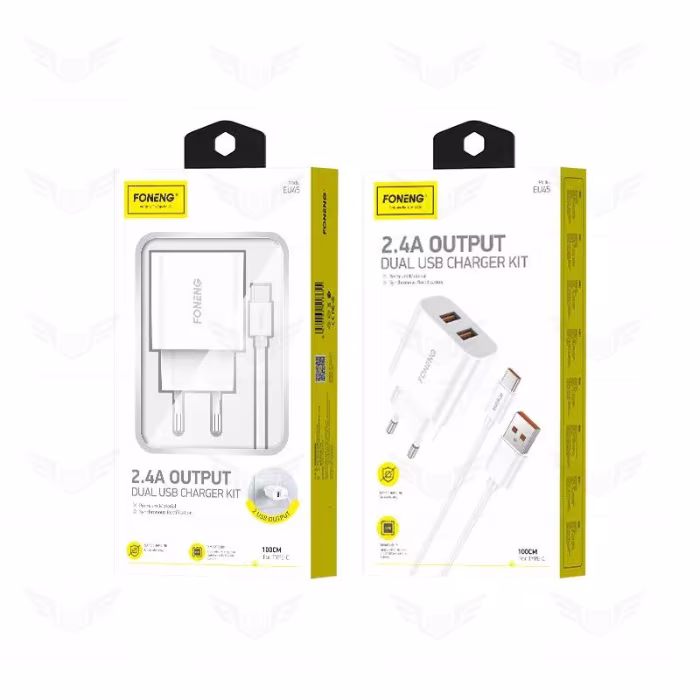 شاحن هاتف بمخرجين مختلفين EU45 USB-A 2-PORT CHARGER (2.4A)