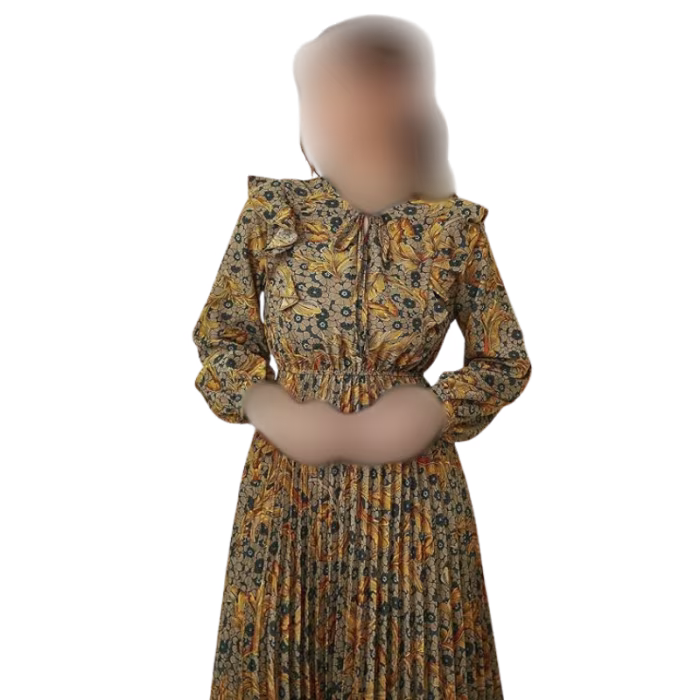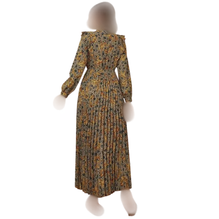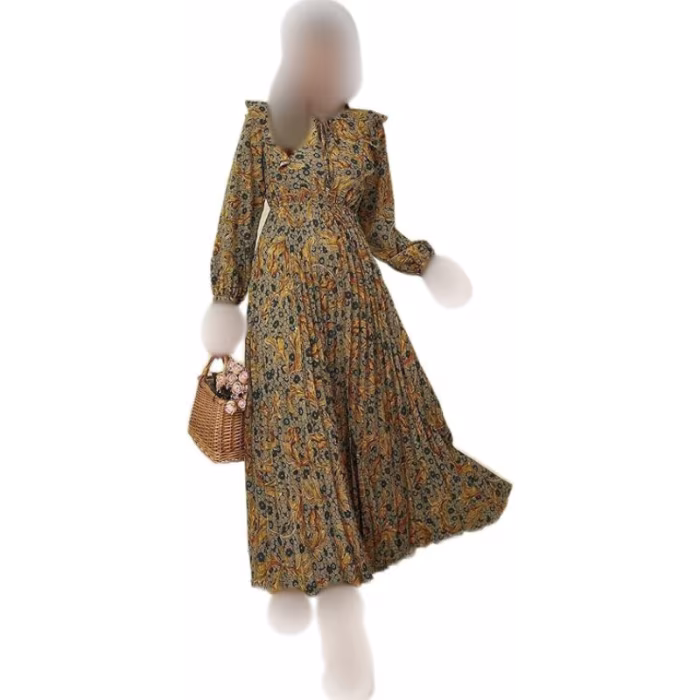 فستان باروك مزين بكشكشة ورقبة مزينة برسومات أزهار باروك