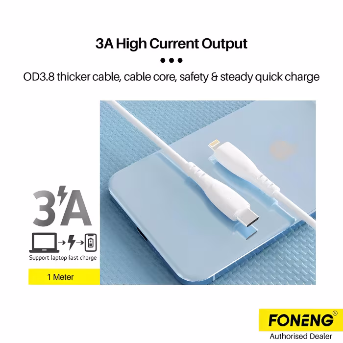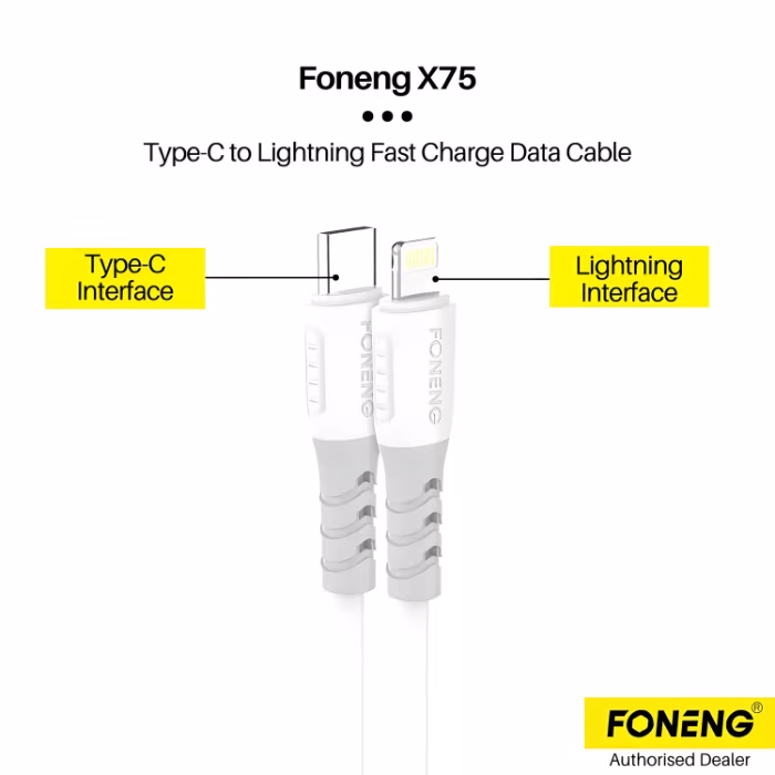 سلك شاحن X75 بطول 1M بنوع واحد Type-c to Iphone بقوة 3A