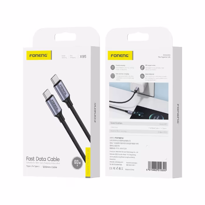 سلك شاحن X95 بطول 1.2M بنوعين مختلفة (type-c to iphone/type-c to type-c)
